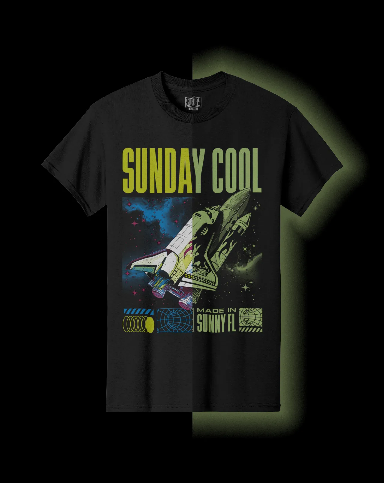Say goodbye to dull and faded t-shirts that no one looks twice at. Make a lasting impression long after the sun sets, charging in daylight and glowing with a soft, captivating light in the dark.